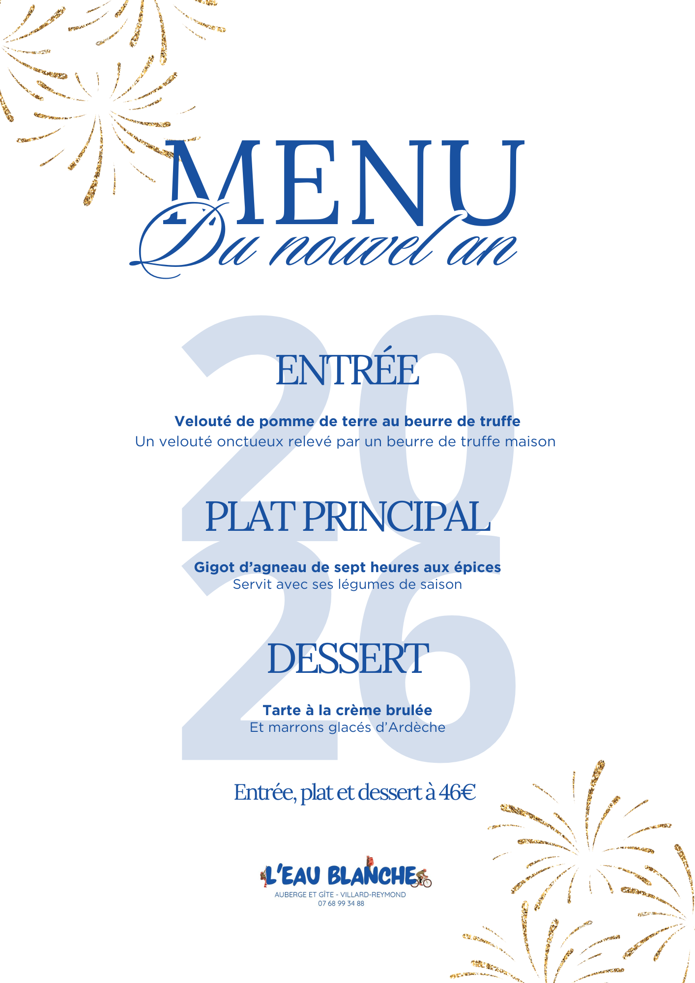 Venez partager un moment en famille ou entre amis autour de notre menu du nouvel an !